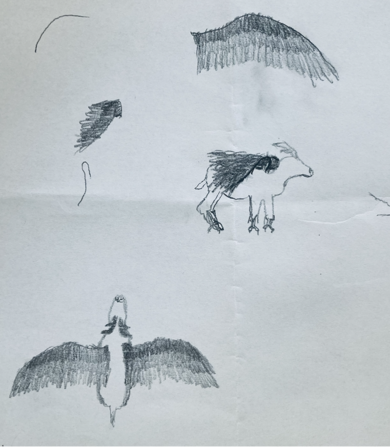 Aan het einde van het gesprek vroeg ik (bijna) alle leerlingen een tekening te maken van een fantasiebeest. Ze kregen hier 5 minuten, een potlood en papier voor. Meer instructie kregen ze niet. De meesten hadden snel een idee in hun hoofd en hadden het ook binnen 5 minuten op papier. Ze vonden de opdracht leuk om te maken. Eén leerling vond het fijn om beeldmateriaal op te zoeken. Hij tekende niets letterlijk na, maar gebruikte het voor zijn idee vorming. Onderaan deze pagina zijn een aantal van de tekeningen terug te vinden.